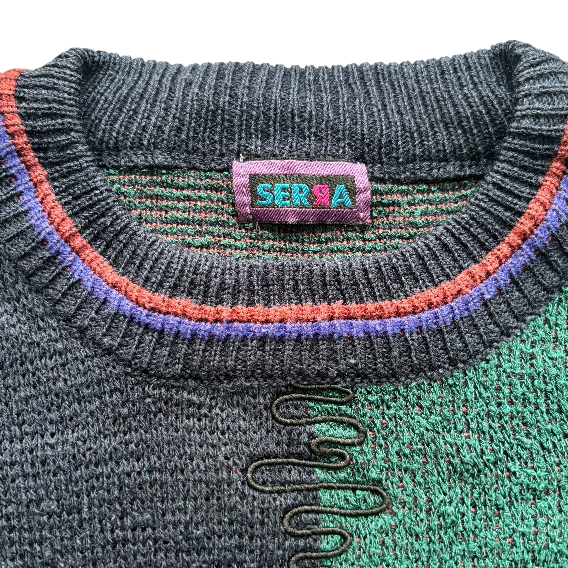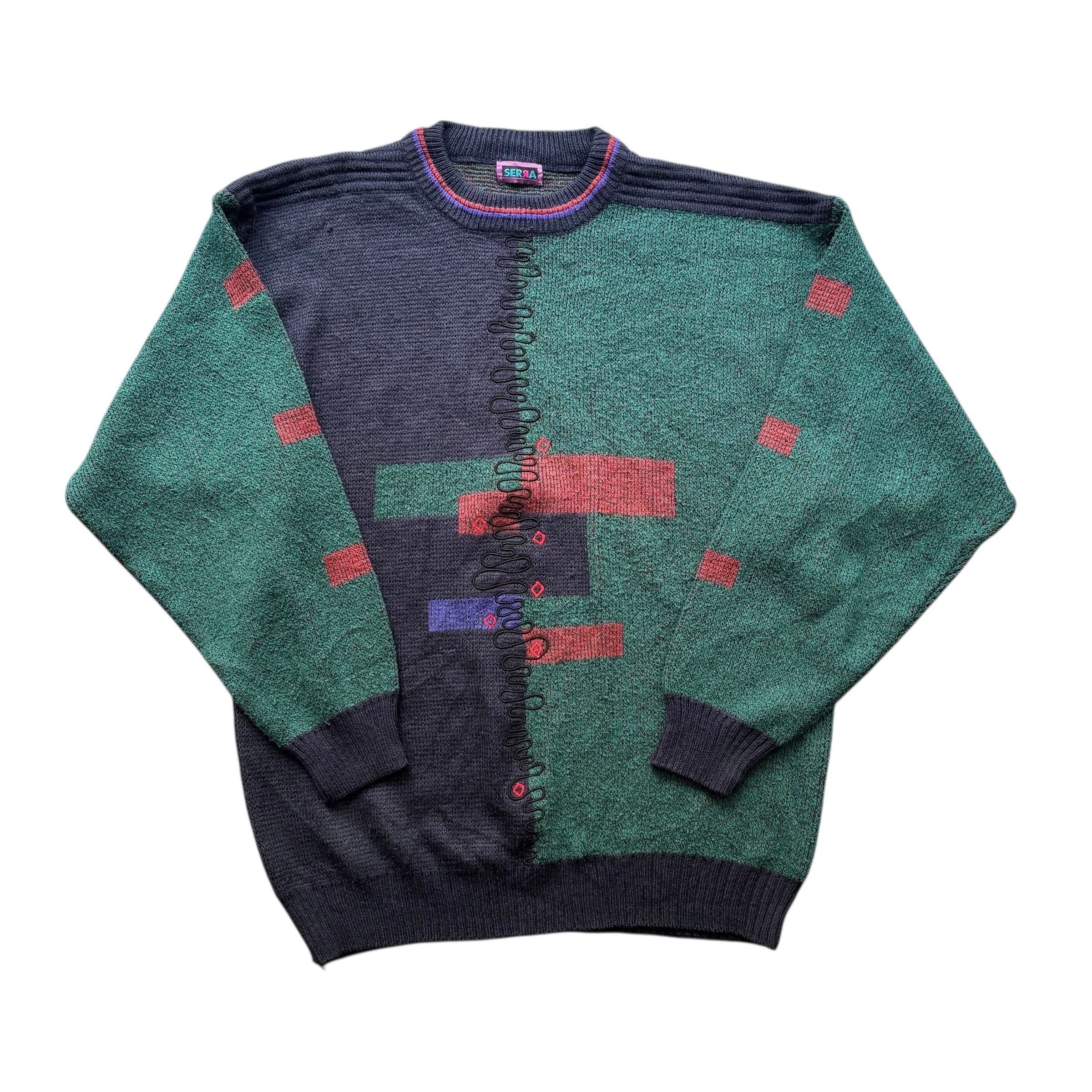 【古着】”SERRA” Design Knit (Green×Navy)